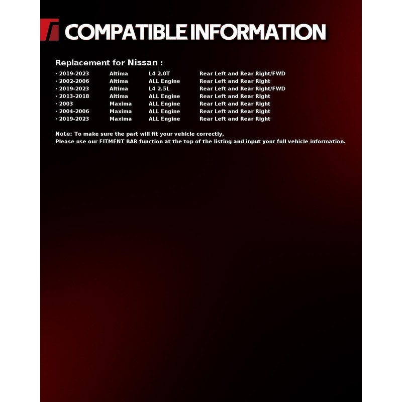 - 【Product Adaptation】:Torchbeam Rear Calipers for Nissan Altima 2002-2006 2013-2023, Nissan Maxima 2003-2006 2019-2023