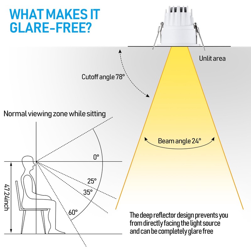 - Sleek Design: The narrow frame and deep baffle design of our 2 inch recessed lighting not only saves space but also reduces glare, providing a visually appealing lighting solution