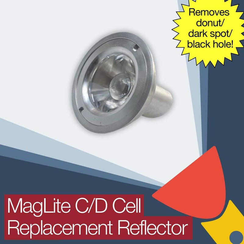 - Upgraded MagLite compatible Reflector suitable for MagLite compatible C or D cell flashlights.