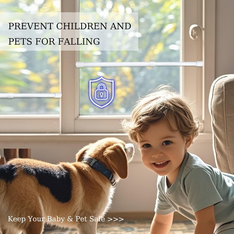 - The window safety bars can be used not only for windows and sliding doors, but for other areas of the home as well. Such as clothes hangers, shoe racks, cabinet pull rods, curtains, door curtains, etc., also can be used for hanging light strips, Christmas decorations, Halloween decorations, etc. It can meet your various needs