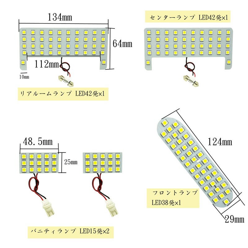 - Set Contents: Front lamp 38 LEDs x 1, Real room lamp x 42 LEDs x 1, Center lamp x 42 LEDs x 1, Vanity lamp x 2. (Manufacturer's Warranty) Brand Name: TORIBIO (Registration No. 6135494)