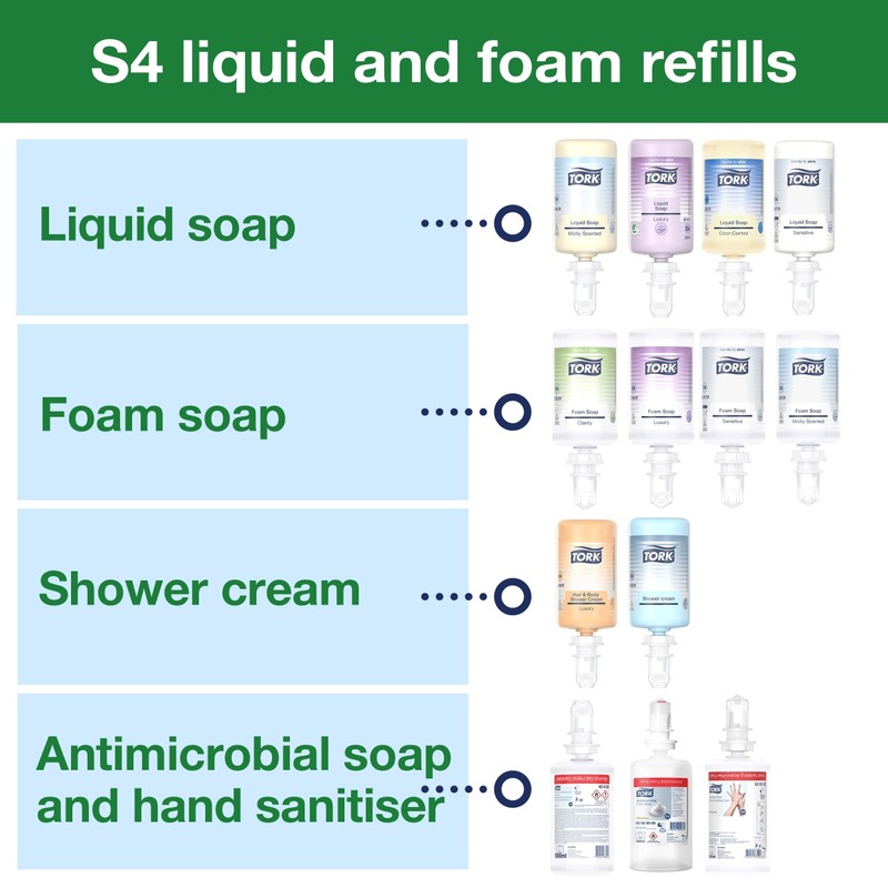 • Meet different hygiene needs with just one system: choose from a wide range of hand soaps and hand sanitizers - as foam, liquid or gel.