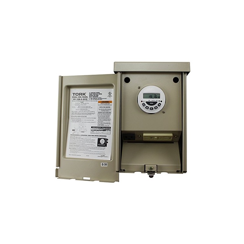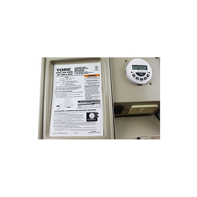 Tork Nsi 2 Circuit Pool Digital Time Switch with 3 While-in-Use Gfci Outlets Pp-10R-E-Gfci - Beige