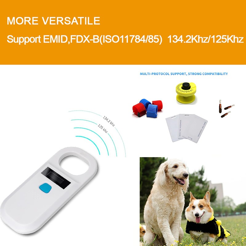 • Dual-Frequency & Wide Compatibility: Supports 125kHz & 134.2kHz RFID chips (EMID, FDX-B) and complies with ISO11784/85 standards, ensuring broad coverage for different pet chips. However, it does not support Avid chips and cannot recognize 9-digit IDs. This device only supports reading 15-digit IDs