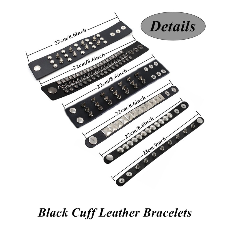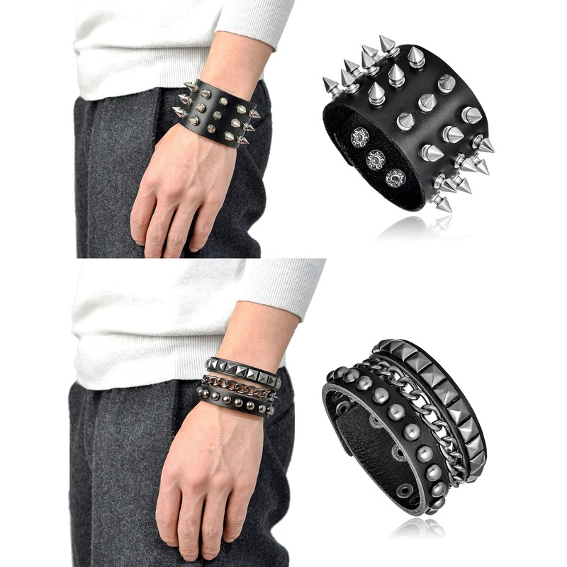 - HIGH QUALITY MATERIAL: Punk Bracelets are Made of Handmade Soft PU Leather and Sturdy Alloy, Soft Thick and Smooth, Leaving Great Touch Felling, Healthy and Comfortable to Wear, PU Leather Is Better in Texture, Hand Feeling, Vision and Flavor Compared With Faux Leather