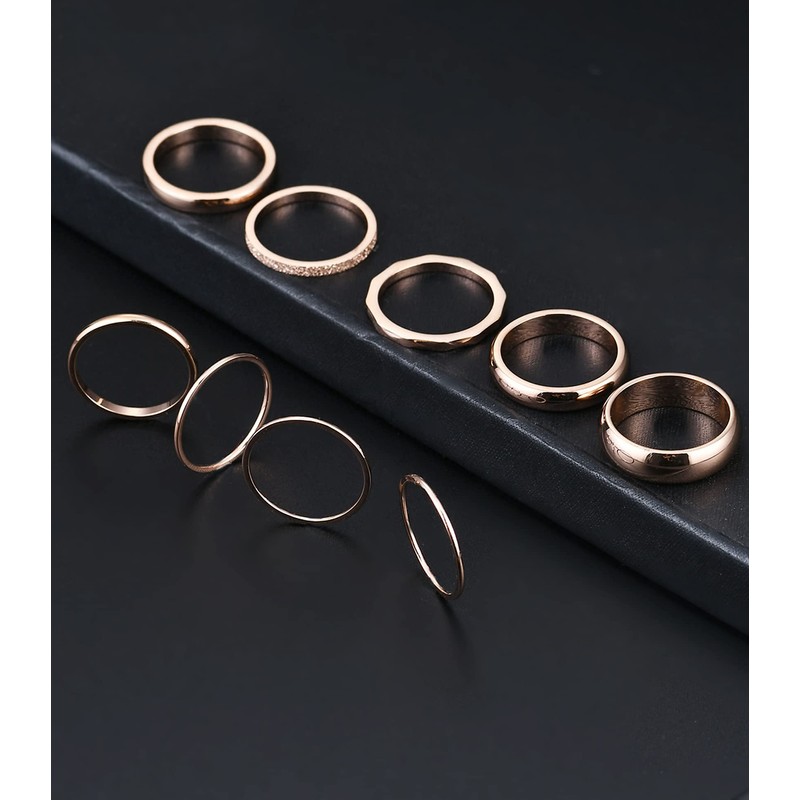 Tornito 9Pcs Stackable Eternity Ring Stainless Steel Band Knuckle Engagement Wedding Ring Size 8 for Women Rose gold Tone