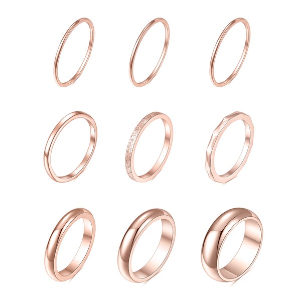 - 9PCS ONE SET: 9Pcs in One Set, 5 Different Size Rings : 3Pcs 1mm and 2mm, 1Pcs 3mm, 1Pcs 4mm and 1Pcs 6mm, Various Sizes for your Choice, Meeting your Daily Wear