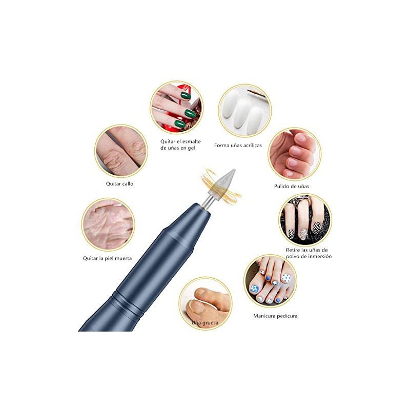 - Limas de uñas profesionales: Este juego de manicura y pedicura se puede utilizar para manicura, pedicura, pulir y eliminar el exceso de cutículas y callos, o para la belleza de las uñas, etc. Esta lima de uñas eléctrica funciona muy bien tanto en uñas naturales como artificiales. Los juegos con 6 brocas de mango diferentes, 5 brocas de manicura,6 bandas de lijado. ¡Hace que sea fácil de tratar tus uñas en casa!