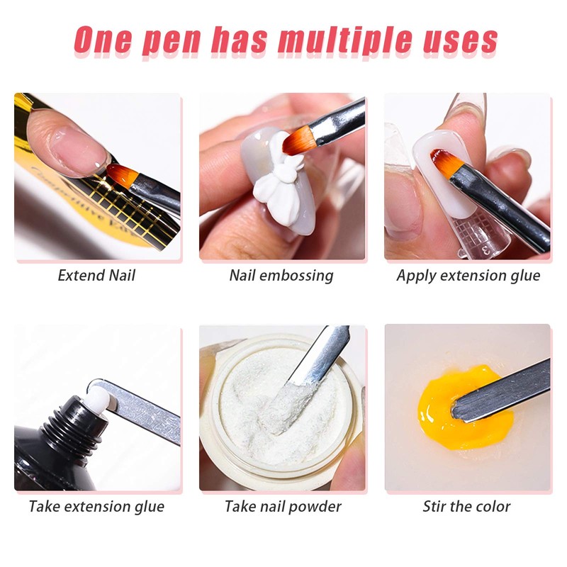 1. Pincel de esmalte de uñas y selector de doble extremo, acrílico, gel UV, herramienta de uñas de gel para extensión de uñas de gel UV