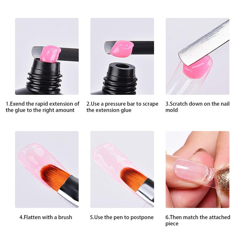 1. Forma el gel de extensión de polietileno en las formas dobles o formas de uñas. (Un consejo cálido: puedes sumergir el pincel en alcohol isopropílico para que sea suave cuando formes el gel con este pincel para uñas).