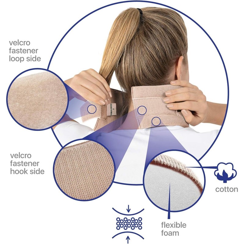 - Ergonomic and comfortable: Keeps your head in a comfortable, straight position, hinders head movement and stabilises the injured area. The ergonomic design of the orthosis ensures no discomfort. Breathable, moisture absorbent, 100% cotton, filled with a soft, lightweight foam, provides excellent support for the injured tissue and keeps your neck stable and warm. Thanks to the adjustable Velcro closure, it is easy to put on.