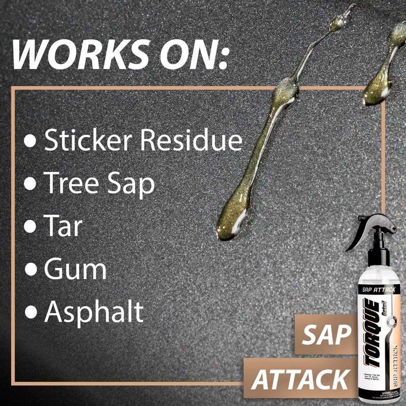 Torque Detail Sap Attack 8oz - Removes Tree Sap, Tar, Gum, Sticker Residue & Asphalt - Sap, Tar, Adhesive, Sticker Remover For Cars