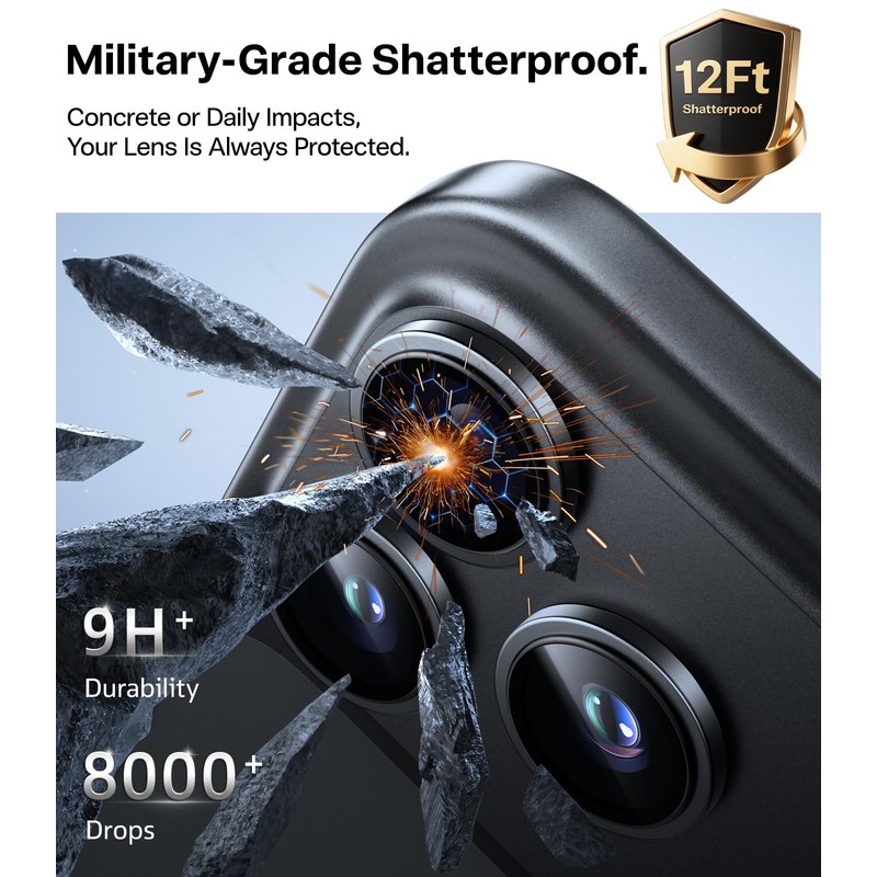 - 【Top-Notch protection with proven durability.】Enjoy top-notch protection for your 17 Pro Max/17 Pro with aerospace-grade 9H+ glass. Built to MIL-STD-810H military standards, it survives drops from up to 12 feet. Resists up to 25,000 scratches to shield your lens from daily wear like keys or concrete. Saves you from $200 lens repairs. A smart choice for lasting protection.
