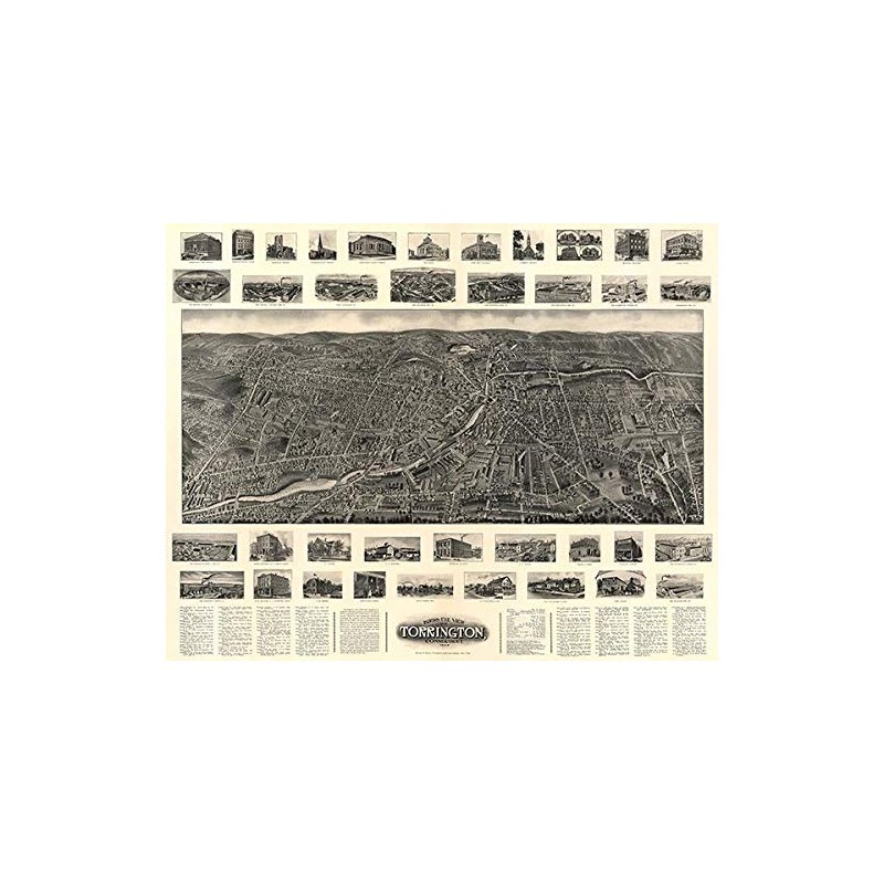 Torrington, Connecticut - 1907 - Aerial Bird's Eye View Map Poster