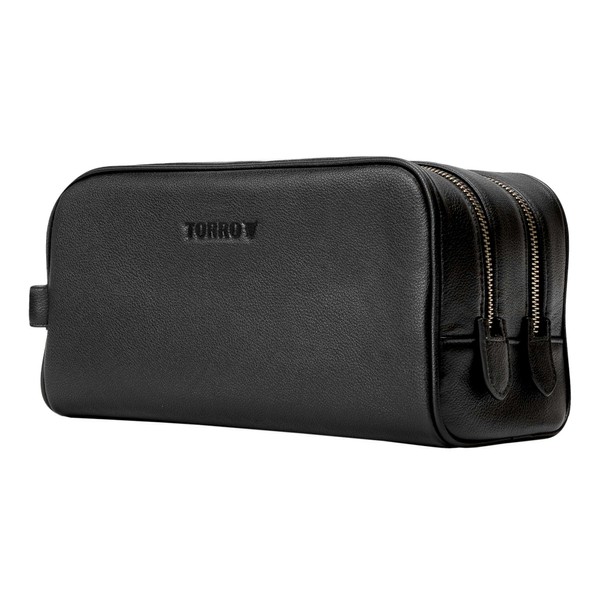 TORRO Leather Wash Bag – Premium Leather Washbag with Water-Resistant Inner Lining and Easy Carry Handle (Black)