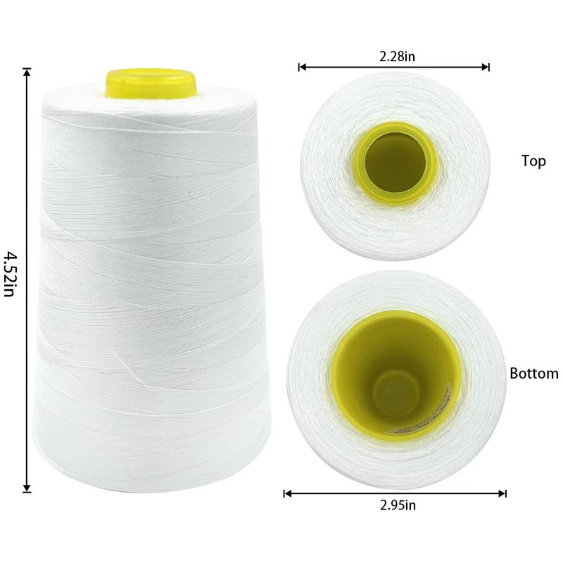 Tortoise 4 Cones of 3000 Yards Each Spool Thread for Sewing All Purpose Sewing Thread 100% Polyester Thread for Serger Overlock Quilting Sewing Machine 20S/2 White