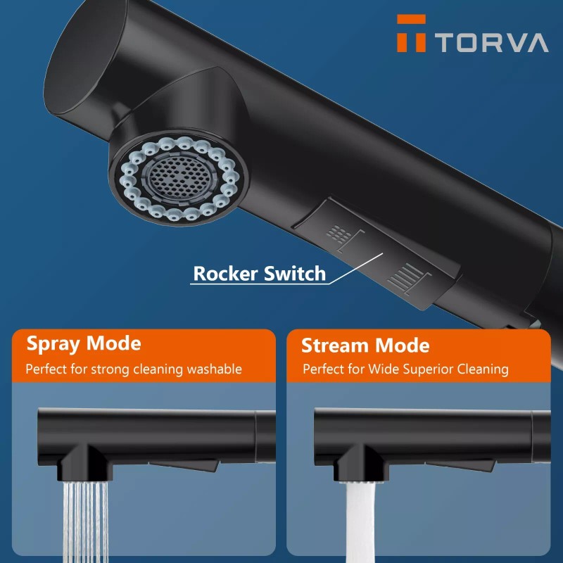 TORVA Black Stainless Steel Kitchen Faucet w/ Pull Down tap Pull Out Sprayer Handle