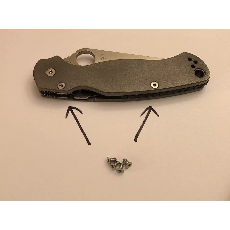 Set of 4 screw - replacement T8 torx screws - for Spyderco Paramilitary 2. Fits genuine USA made Spyderco Paramilitary 2 only.