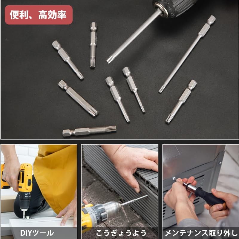 Torx Screwdriver Bit, Hollow Torx Head, Set of 11, 3.0 inches (75 mm), S2 Steel Screwdriver Bit, Magnetic, Torx Star Screw Bit Set, Hex Bit, Star, Plum Blossom Screwdriver Set, Electric Drill Bit