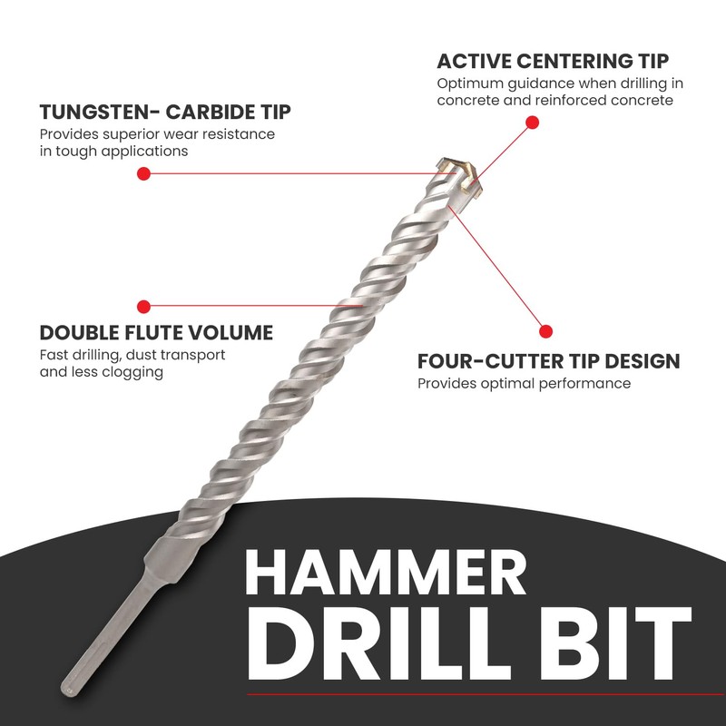 • [ Enhanced design ] The Double Flute design of our sds drill bits facilitates the swift removal of material from the hole, ensuring the bit stays cool to ensure greater efficiency of masonry bits