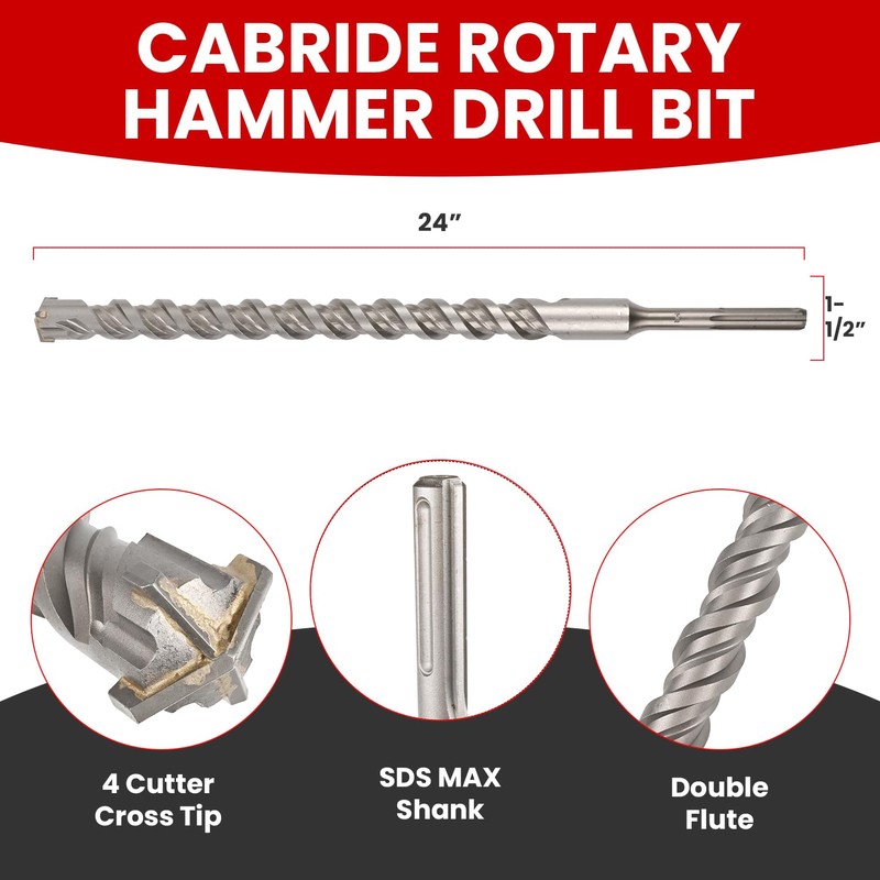 • [ Big Size ] 1-1/2" x 24" SDS MAX Drill Bit – SDS MAX rotary hammers (SDS max only not compatible with regular drills, NOT SDS+, please be careful before place order)