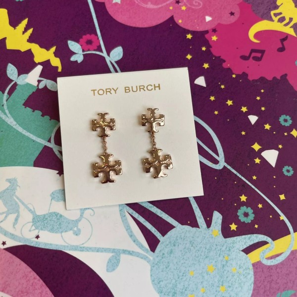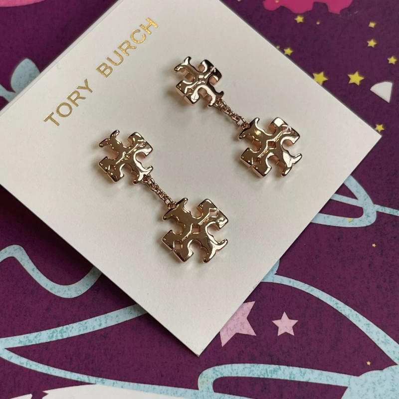 TORY BURCH KIRA LINEAR DOUBLE LOGO DROP Earrings Rose Gold - Mother’s Day Gift