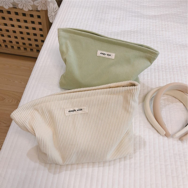 - Material -- The cosmetic bag made of high quality corduroy fabric, soft to the touch. Lined with canvas material. The smooth zipper keeps your belongings safe and organized.