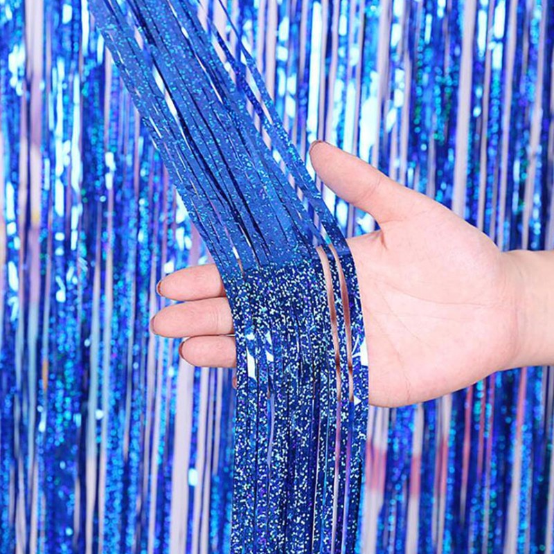 - Material: this tinsel curtain is made of tinsel with a shiny surface. This shiny foil curtain backdrop fits well in a door or hangs some side by side on the wall to create a shimmering streamer curtain.