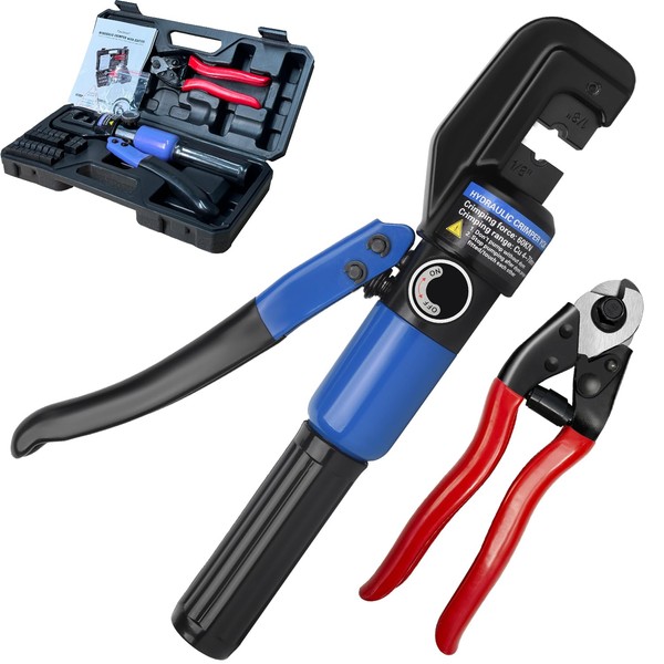 - 【Versatile Cable Crimping tool】Designed for 1/8" (#6 die) and 3/16" (#10 die) stainless steel cable railing hardware. Compatible with 12 AWG to 2/0 AWG copper and aluminum wires. Includes a precision cable cutter, cleanly cuts stainless steel cables up to 5/32".