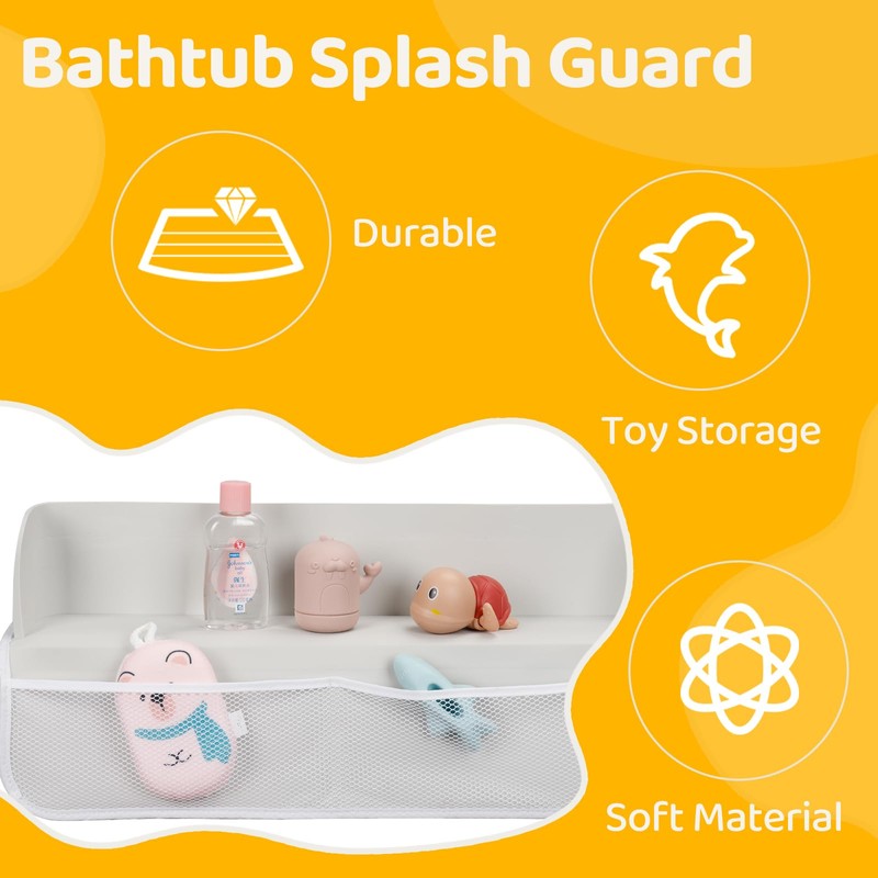 - 👶【𝗗𝗲𝘀𝗶𝗴𝗻𝗲𝗱 𝗳𝗼𝗿 𝗖𝗵𝗶𝗹𝗱𝗿𝗲𝗻】: The Bathtub Splash Guard and Play Shelf Area is a game-changer for bath time fun and cleanliness! It’s designed for children, keeps the baby toddler from escaping the low tub. Keep kids entertained and keep floor dry.