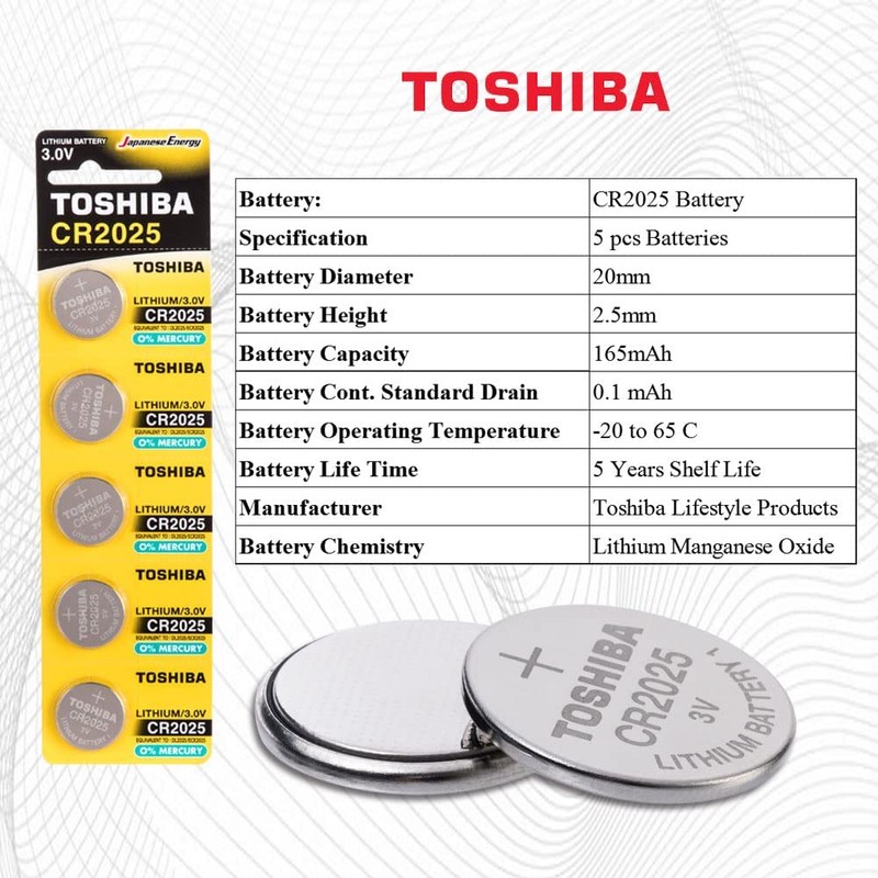 Toshiba CR2025 3V Lithium Coin Cell Battery Pack of 5