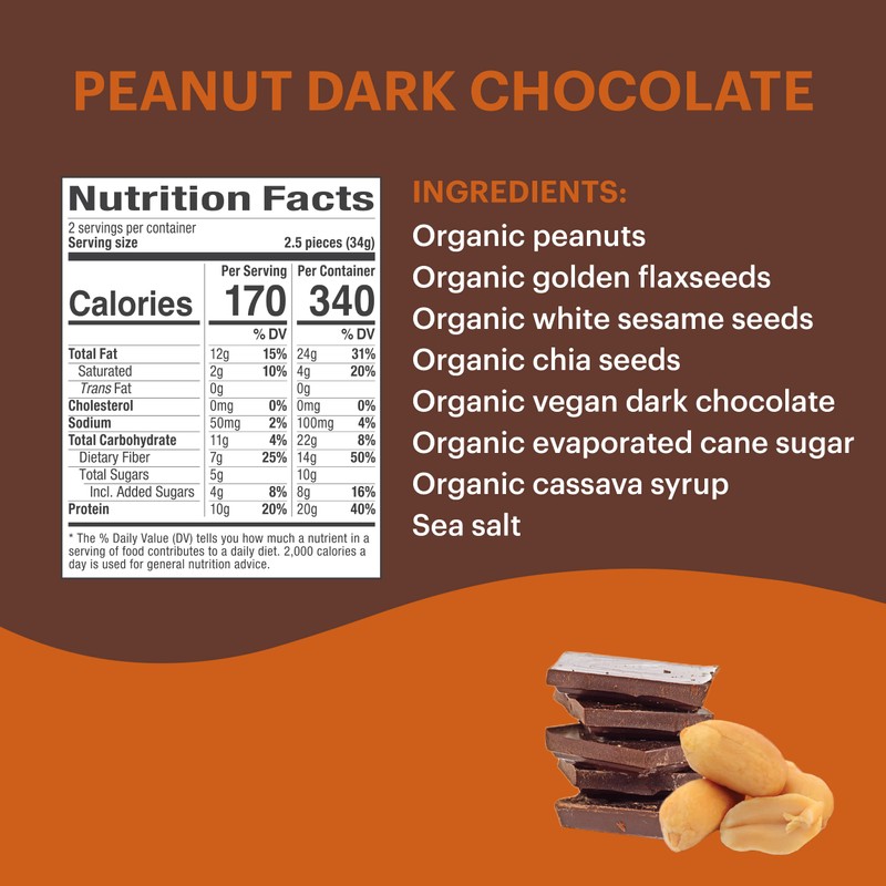 Tosi Tosi Dark Chocolate Peanut Protein Bars, Plant Based with Nuts, Gluten-Free Crunchy Snacks, Vegan, Organic, Flax & Chia Seeds, Soy-Free, Omega 3s, 20G Protein, 2.4 oz, 12-Pack