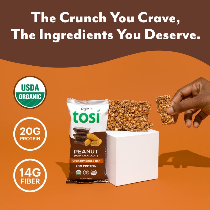 - CRUNCHY & DELICIOUS: Unique crunchy bite thats super tasty and simply satisfying. Nothing eats like a Tosi. Take a bite of our nut bars and youll experience what makes us different!