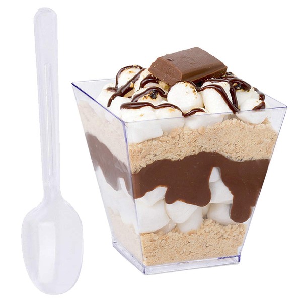 Tosnail 80 Pack 7 Oz Capacity Square Clear Plastic Dessert Tumbler Cups with 100 Spoons