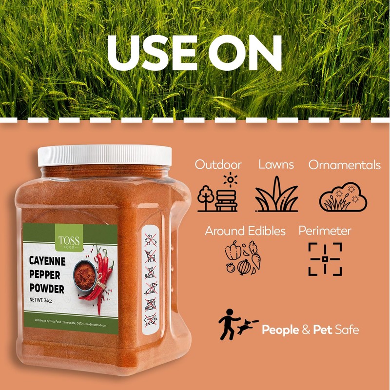 TOSS Cayenne Pepper Powder Bulk 40,000 Heat Units 34 Oz, Garden Protection from Wildlife Ground - Cayenne Powder - Red Pepper Powder Spice for Home and Commercial Cooking