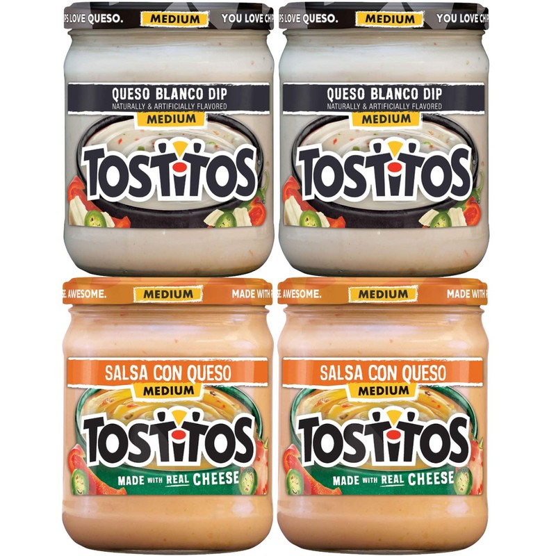 - Includes (1) jar of Tostitos Medium Chunky Salsa, (1) jar of Tostitos Roasted Garlic Salsa, (1) jar of Tostitos Chipotle Salsa, and (1) jar of Tostitos Splash of Lime Salsa