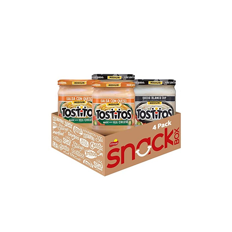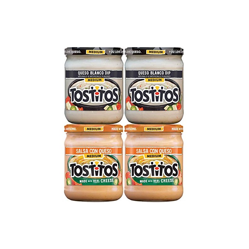 TOSTITOS Queso Blanco Dip blends creamy Monterey Jack cheese with spicy jalape?os and mild red bell peppers for the perfect medium heat. TOSTITOS Salsa Con Queso blends ripe tomatoes, chopped jalape?os and mild red bell peppers for a medium, creamy dip that always gets the party started. Delicious, crowd pleasing and convenient it can't get much better than Frito-Lay chips and dips. From entertaining friends to relaxing at home and everything in between, our perfectly blended salsas and great-tasting dips are always a hit. Mix and match them to discover your own perfect pairing.