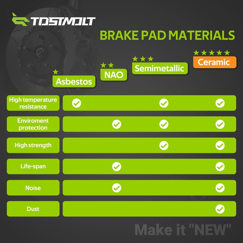 - 【High Performance & Long Lasting Life】-- Carbon fiber infused ceramic fomula provides more braking power with lower heat fade and dust; Powder-coated backing plate extends life by resisting rust and corrision. No-Hassle exchange will be offered if there is any manufacturer defect.