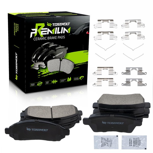 - 【Package Includes】: 8pcs Complete Front + Rear Ceramic Brake Pads (Including Hardware Kit For Easy Installation & Safer Operation of New Pads. The Old Clips May Become Deformed, Loose or Rusted Which Will Cause Issues Such As Abnormal Noise, Reduced Braking Efficiency, Uneven Wear of Brake Pads and Disc,etc. We Provide New Brake Clips To Eliminate These Potential Risks and Ensure Smooth Operation and Reliable Braking Performance)