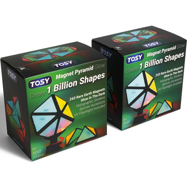 TOSY Magnet Pyramid Glow - 1 Cube Transforms into 1 Billion Shapes, 12 Pieces, 243 Rare Earth Magnets, Glowing, Holographic Design Magnet Tiles Creative Puzzle STEM/STEAM Toy, 2-Pack