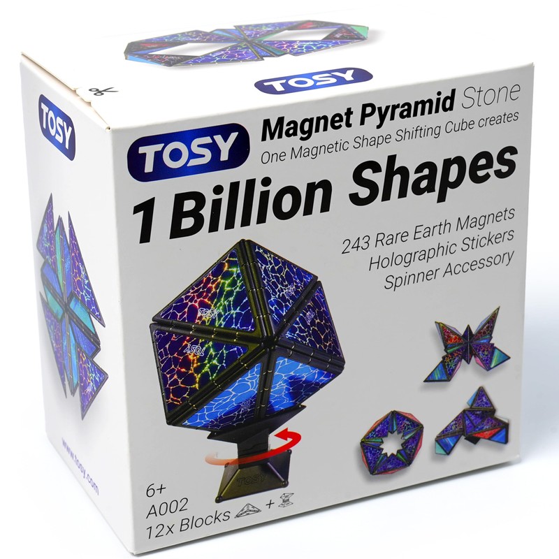 - 1 BILLION SHAPES - There is no limit to what you can build and create with our magnetic shape-shifting box. Featuring 243 rare earth magnets, the patent-pending TOSY Magnet Pyramid helps you unlock your endless creativity while challenging and relaxing your mind at the same time. The included spinner accessory gives you even more possibilities for innovative transformations