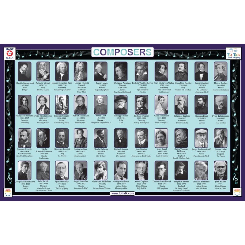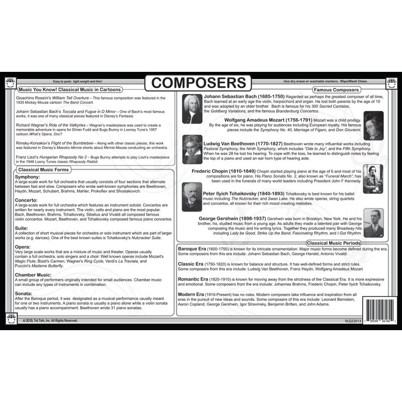 Tot Talk Composers Educational Placemat for Kids – Made in USA – Durable, Double-Sided, Interactive Music Placemat with Famous Composers & Music History – Waterproof, BPA-Free, Wipeable, 17.5” x 11.5”