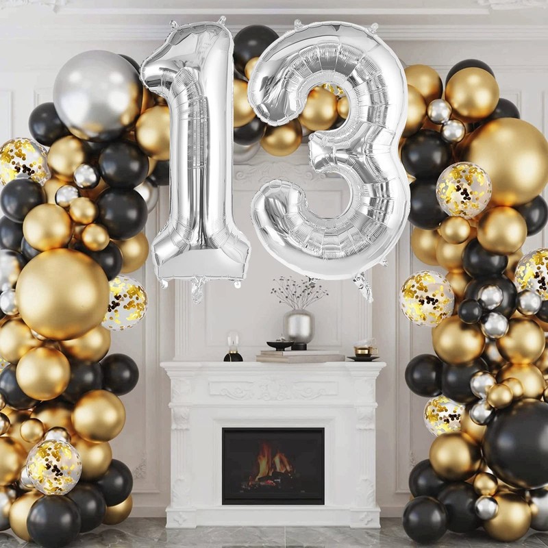 Silver 13 Balloon Numbers, Large 13 or 31 Foil Balloons, Big Number Balloon 4...