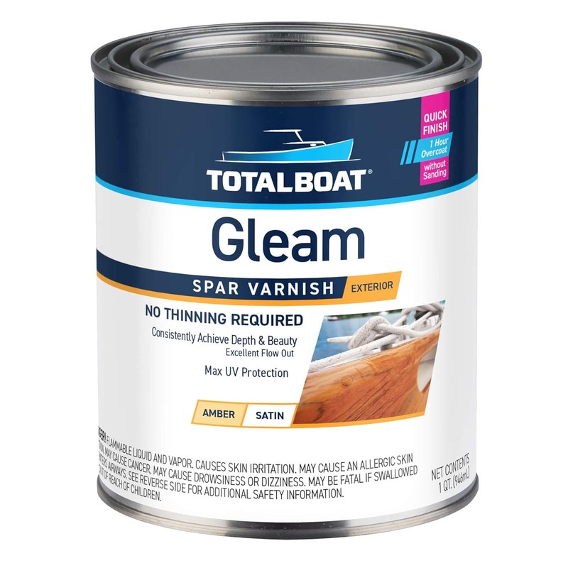 TotalBoat Gleam Marine Spar Varnish, Gloss and Satin Polyurethane Finish for Wood, Boats and Outdoor Furniture (Satin Low-Sheen Quart)