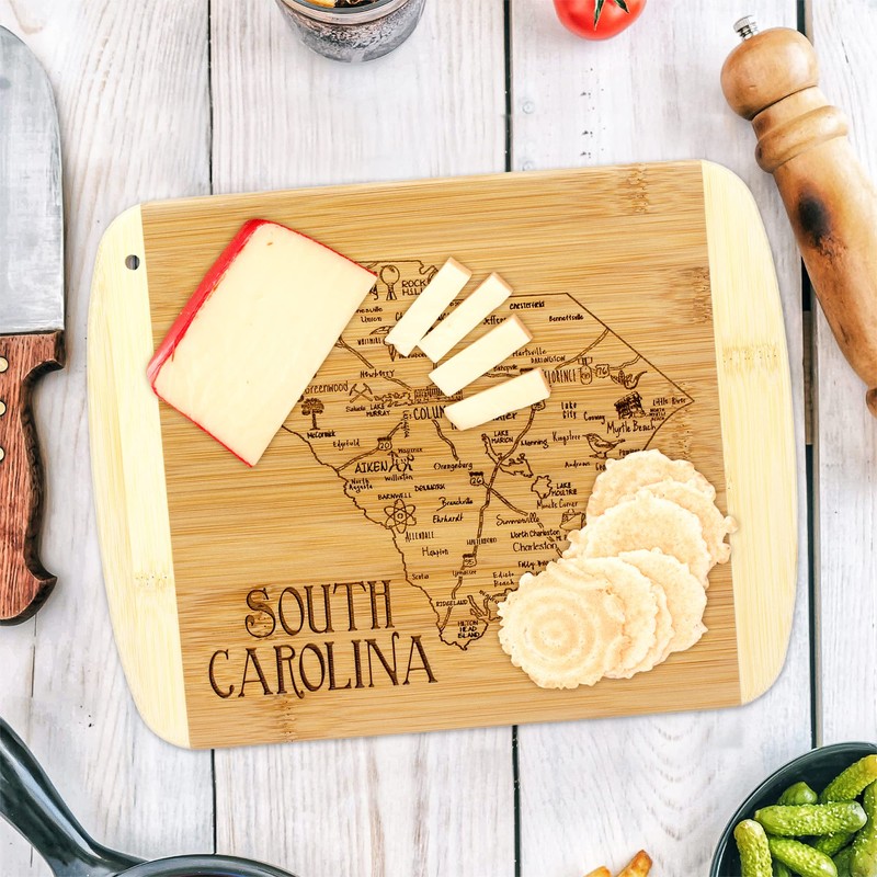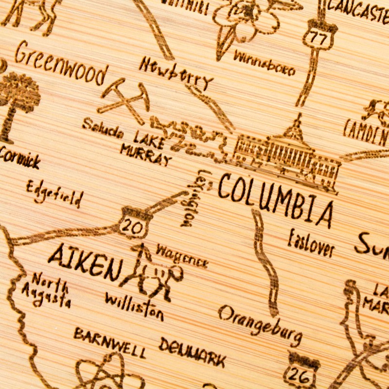 - Savor a slice of The Palmetto State with this beautiful bamboo serving and cutting board with artwork inspired by the cities, places and people of South Carolina