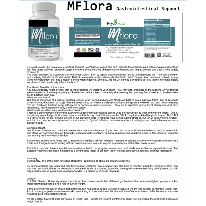 2.) Mflora Probiotic Supplement Digestive Support Immune System Colon Health Capsule