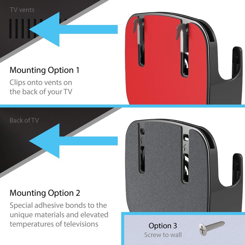 • Includes three mounting options (including tool-free installation options – no drilling required).
