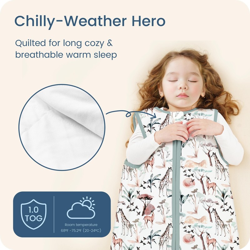 - COZY 1.0 TOG - With a snug 1.0 TOG rating, our sleep sack is perfect for room temperatures ranging from 68-75°F, this premium baby wearable blanket ensures a restful and serene sleep environment for your precious little one. Crafted with care, the sleeping bag offers the ideal blend of warmth and breathability, providing a tranquil sanctuary for the baby to drift off into dreamland. They can be layered with warmer sleepwear for cooler temperatures, ensuring year-round comfort for your baby.