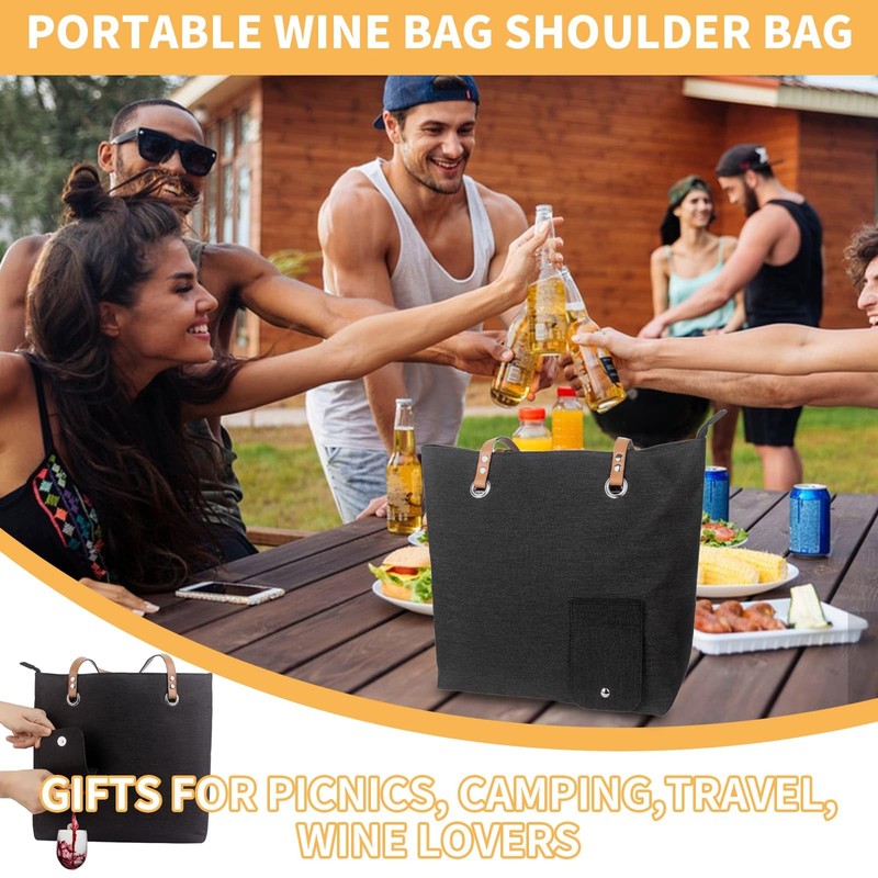 - 【Multi Functional and Large Capacity】: The bag has multiple compartments and large capacity spaces inside, which can not only hold two bottles of wine or 1.5 liters of drinks, but also carry snacks, cheese, fruits, magazines and other items, making it very suitable for picnics, camping, beaches and other occasions.