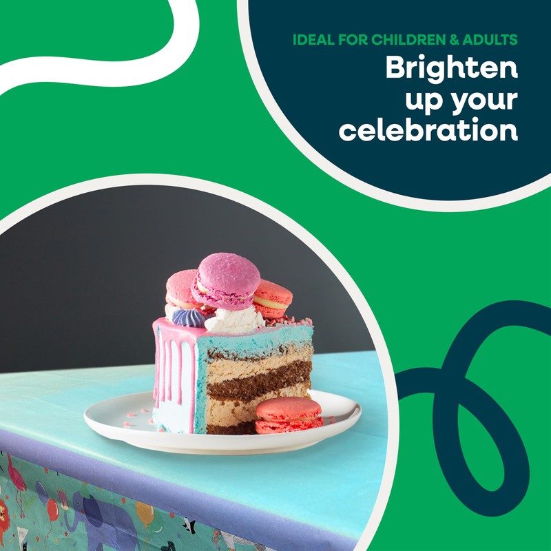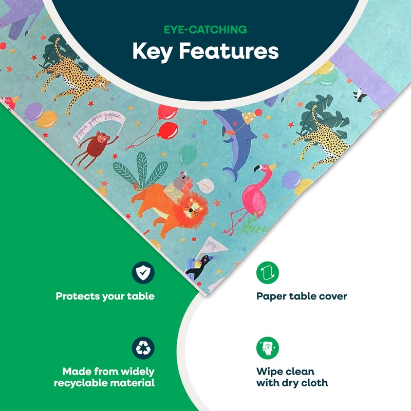 - Adding a touch of colour to your party couldn’t be simpler with one of these Party Animal Table Covers from Totely, a large paper tablecloth with a fun cartoon, Safari design.